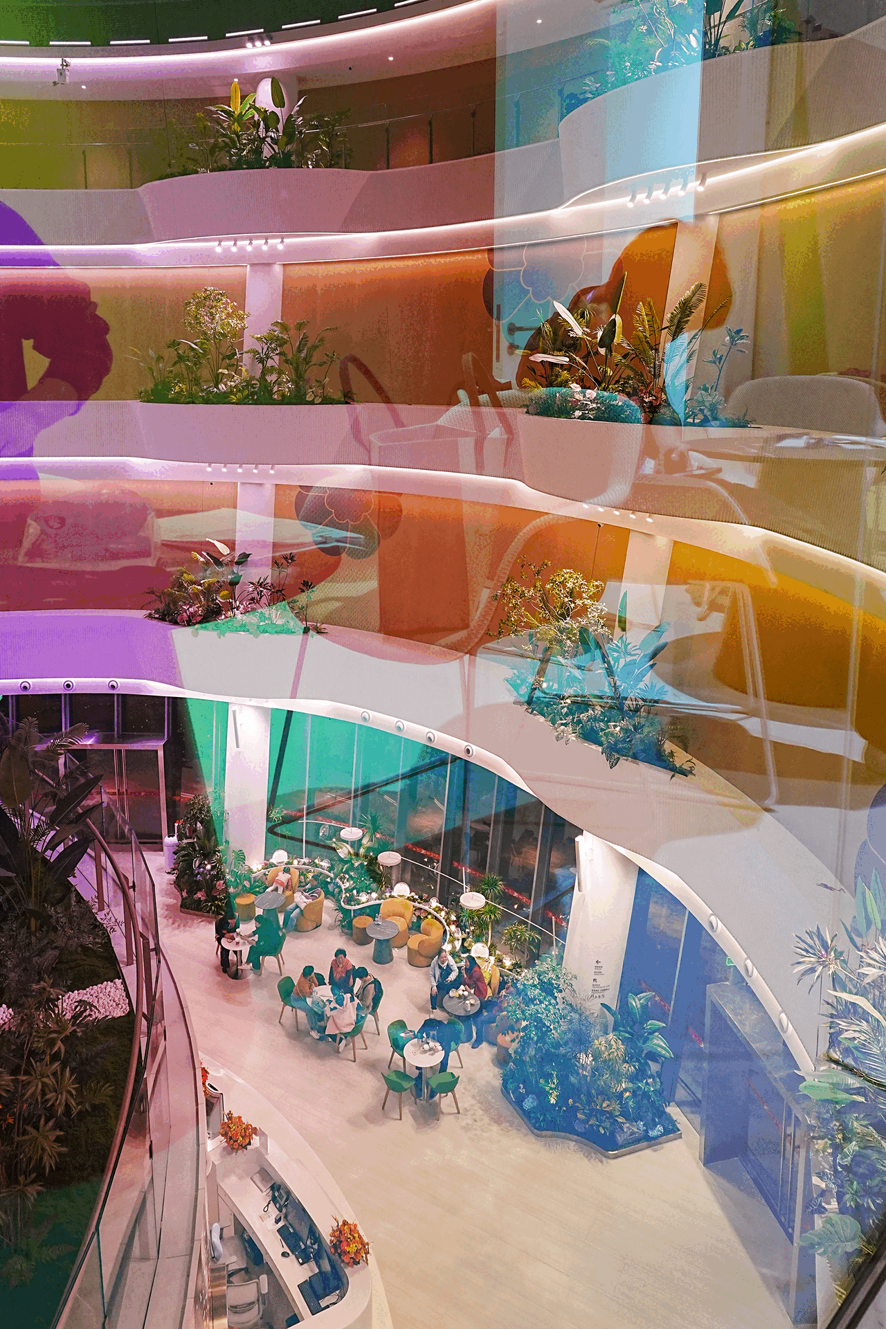 该项目于2017年落子珠江新城,此次升级改造为开业后首次整体焕新,全面优化空间功能与场景体验。馆内设有标志性的美好剧场,视听效果震撼,带来独特的沉浸式体验;纽崔莱、雅姿、高科技三大品牌区均升级为可动手体验的场景化空间,让参观者在互动中深入了解产品特性。此外,体验馆内还增设了安利国内最大规模的健康检测中心,宣传体验安利大健康理念;植言植语(Rich&Jay咖啡)、美好剧场、共享厨房、多功能会议室、悦己坊、卡路里回收站以及共享盒子、网红直播间、企业文化展示区等多元功能区,全面满足消费者与创业者的多样化需求。