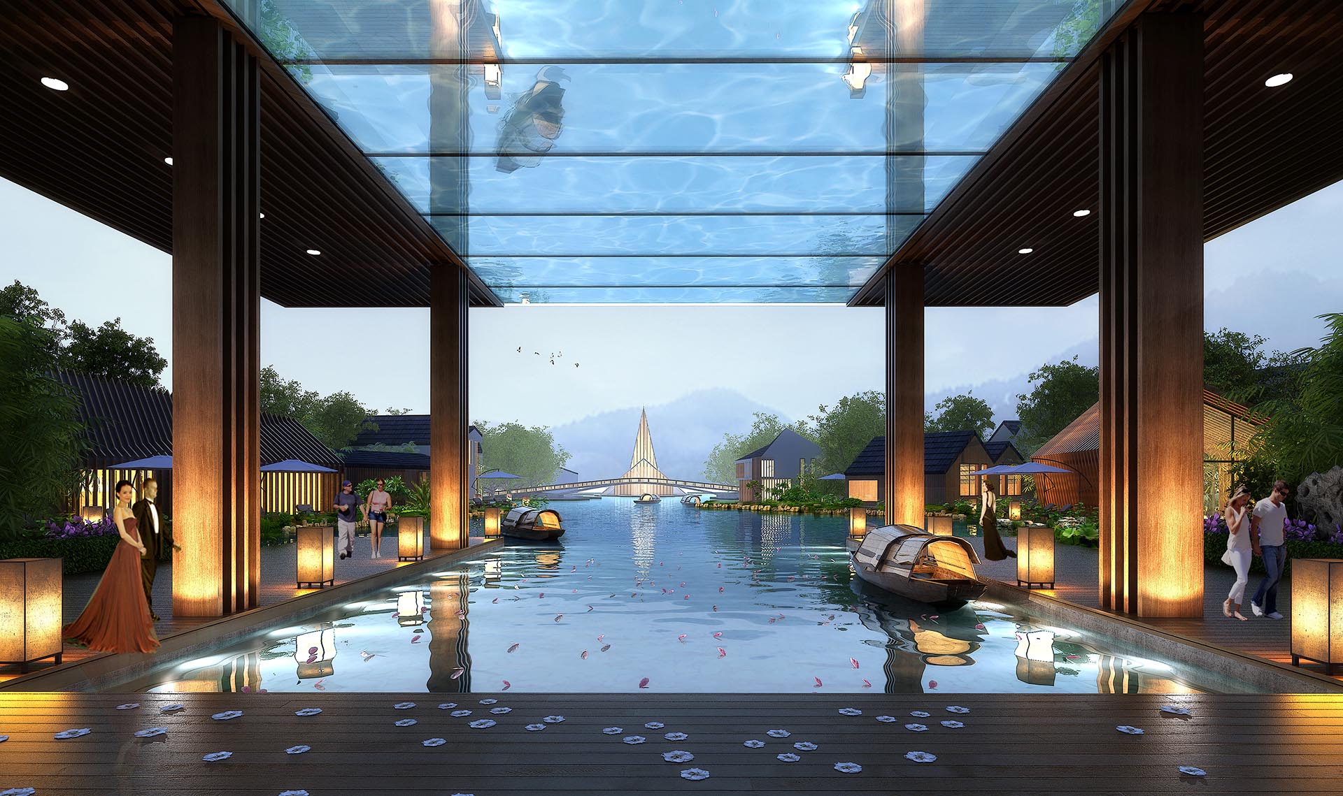 As the main architectural designer of the project, Haskoll explores the design elements of traditional water towns, such as wharfs, wetlands, awning ships, stone arches and other design elements to simplify and sublimate the design. In an effort to create a modern water town with a traditional water lane concept, using modern design techniques. This project consists of 1600 rooms, including the film workshop, art district, commercial area, exhibition center, courtyard hotel, the waterfront shopping street and water park.